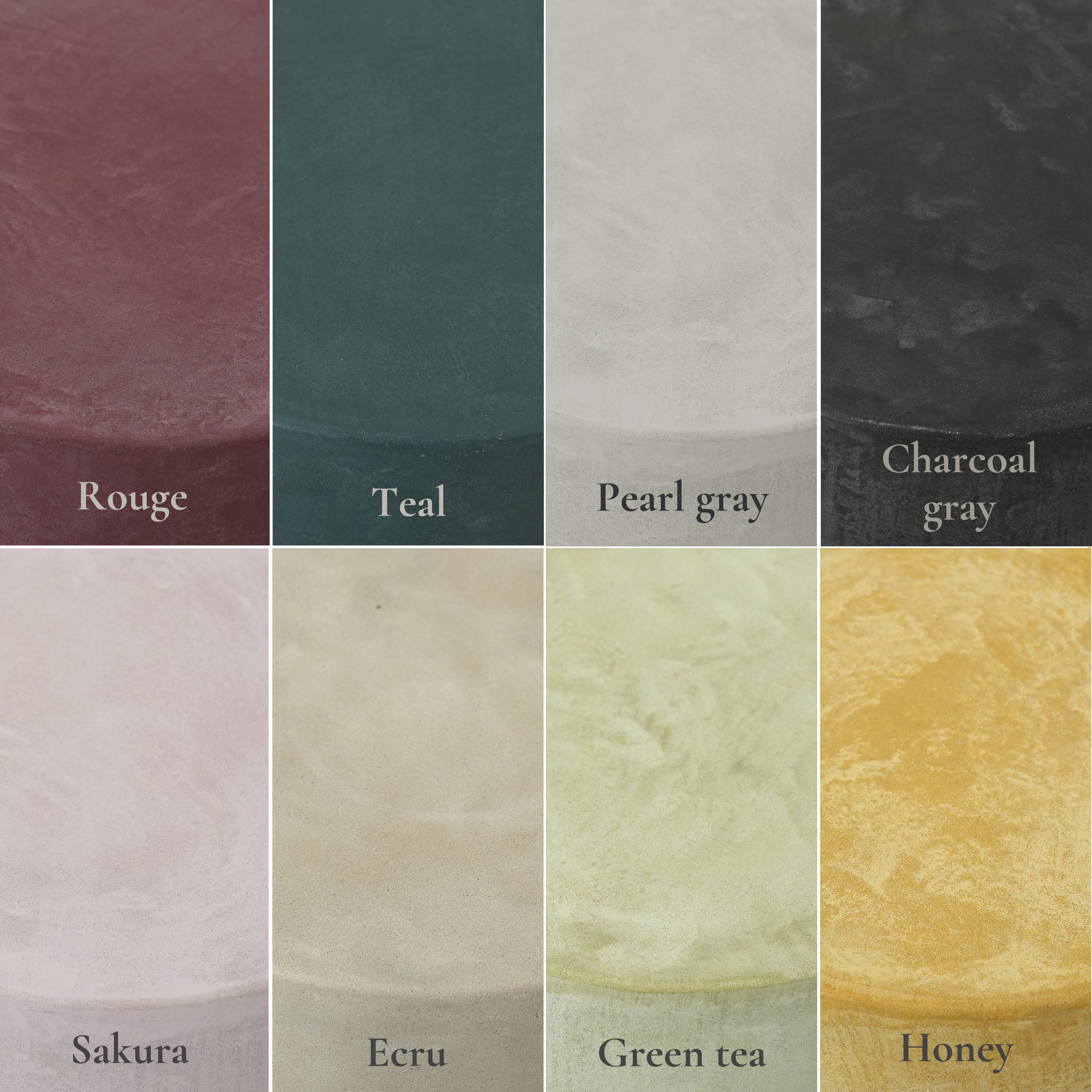 モールテックスは標準カラーが64色ありますが、メゾンベルビーではそれらをミックスして今までにないオリジナルカラー8色をご用意しております。